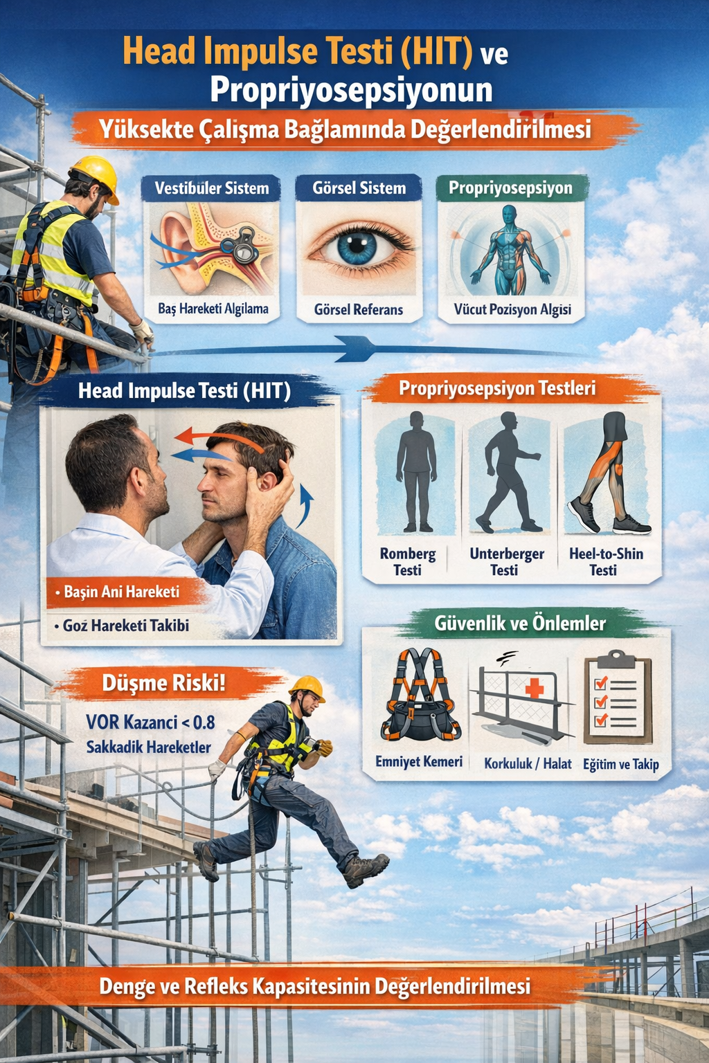 Yüksekte çalışma sırasında düşme riskini en aza indirmek için, HIT ve propriyosepsiyon değerlendirmesi kritik önemdedir.