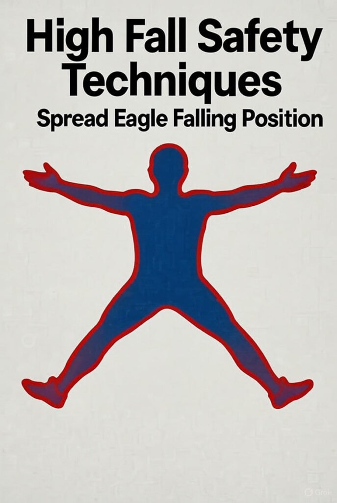 Düşme başladığında (örneğin, iskeletten kaydığınızda), panik yapmayın – vücudunuzu bir “paraşüt” gibi kullanın. Spread eagle pozisyonu (kollar ve bacaklar geniş açık, sırt kavisli)