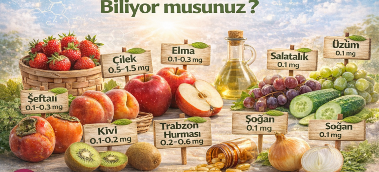 • Doğal kaynak: Çilek (en zengin), elma, üzüm, soğan, salatalık.